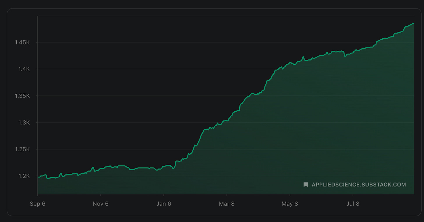 Audio actually does drive growth. So does consistency. This is partially a Substack-specific thought, but I am sure it is true across different platforms. Here is a graph of my subscriber growth and follower growth from the beginning of 2025 to the present: